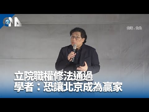 (中央社記者劉建邦、黎建忠台北28日電)立法院會今天三讀修正通過立法院職權行使法部分條文,民團在立院外抗議,學者說如「外交家」雜誌專文,北京可能成為台北倉促通過新法贏家,呼籲台灣人和企業應發聲。
