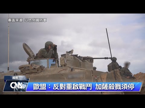 歐盟(EU)代表卡拉斯(Kaja Kallas)在開羅(Cairo)與埃及外交部長阿布德拉提(Badr Abdelatty)舉行記者會時表示:「我們強烈反對以色列重啟戰鬥行動,這些行動在加薩造成重大傷亡。殺戮必須停止。一場新的戰爭,雙方都是輸家。」