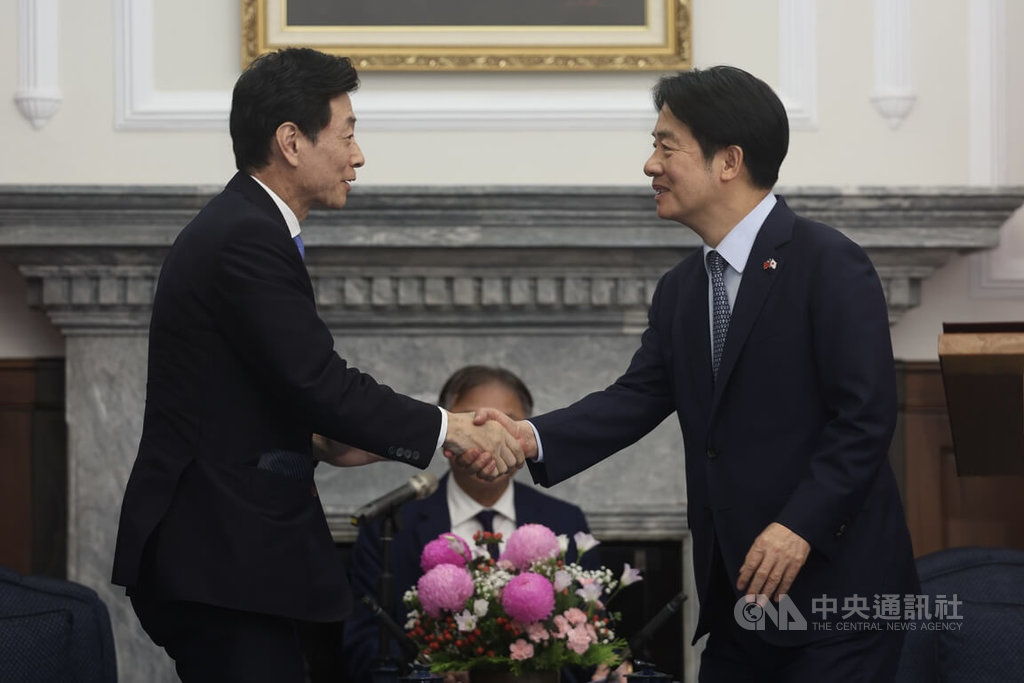 (中央社記者葉素萍台北5日電)總統賴清德今天接見日本前經濟產業大臣西村康稔,總統希望台日共同強化「非紅供應鏈」韌性,促進彼此繁榮發展;西村康稔認為,台灣有事等於世界有事,為了維持台海和平穩定,同盟國家必須緊密合作。