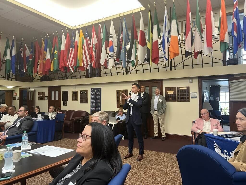 駐波士頓辦事處長廖朝宏在活動發表「台灣提昇全社會防衛韌性作為」專題演說,說明中國近期對台進行灰色地帶侵擾及滲透。