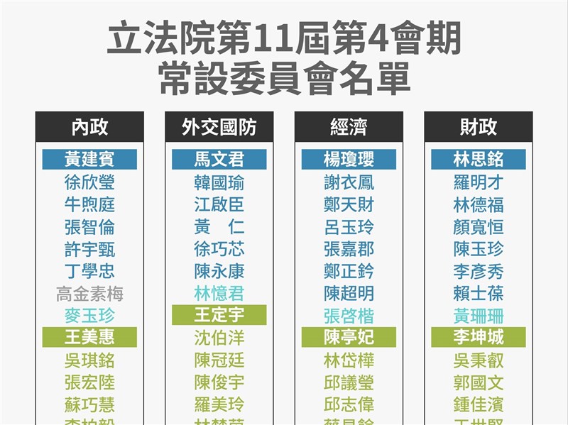 立法院外交及國防委員會推舉民進黨立委王定宇、國民黨立委馬文君擔任召委。