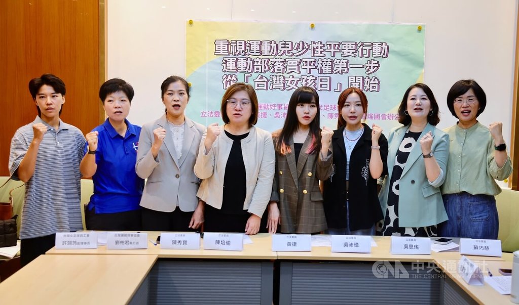 (中央社記者王揚宇台北9日電)10月11日是台灣女孩日,台灣運動好事協會與民進黨立委陳培瑜、黃捷等人今天表示,運動部成立已1個月,呼籲運動部未來透過預算與編制,具體提出兒少與性平的政策作為,也期盼今年底成立兒少、性平、人權等諮詢機制。