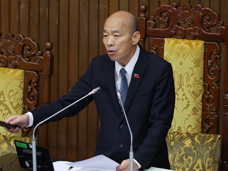 立法院31日三讀通過花蓮馬太鞍溪堰塞湖災後重建特別條例,經費上限新台幣300億元協助災民重建。圖為立法院長韓國瑜敲槌。中央社記者翁睿坤攝 114年10月31日