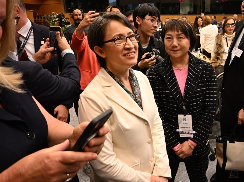 (中央社台北8日電)副總統蕭美琴昨天晚間(歐洲時間7日下午)在比利時首都布魯塞爾出席「對中政策跨國議會聯盟」(IPAC)年度大會,並發表演說。同樣出席會議的民進黨立法委員范雲透過臉書寫下:「見證歷史的一刻!」