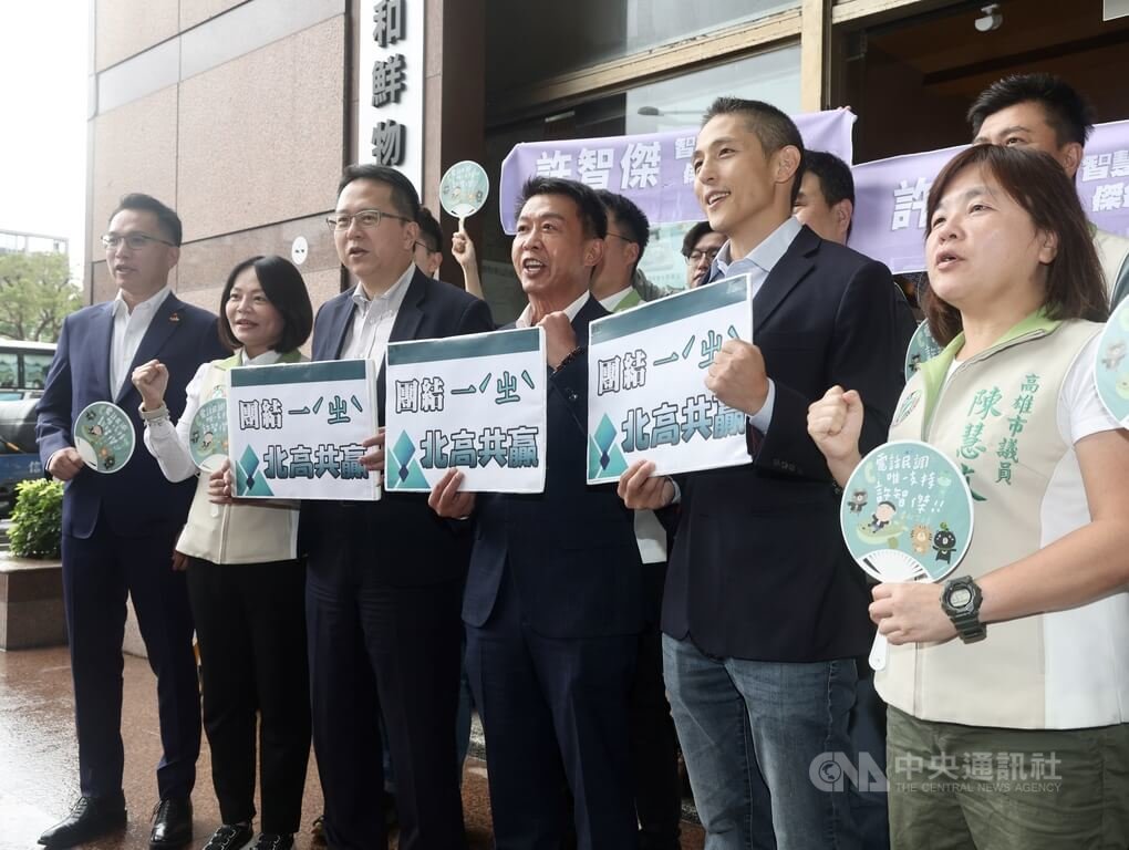 吳怡農陪同民進黨立委許智傑登記參選2026年高雄市長初選,並接受媒體聯訪。
