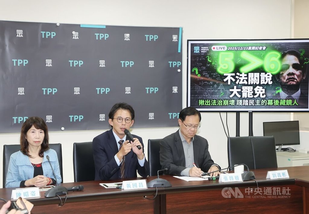 黃國昌提到,有媒體竟在報導中寫到「大罷免時,府院請黨政高層與其溝通踢鐵板」,他要問總統府、行政院,是誰找誰去跟蔡宗珍溝通,執政黨關說司法還毫不避諱寫出來。