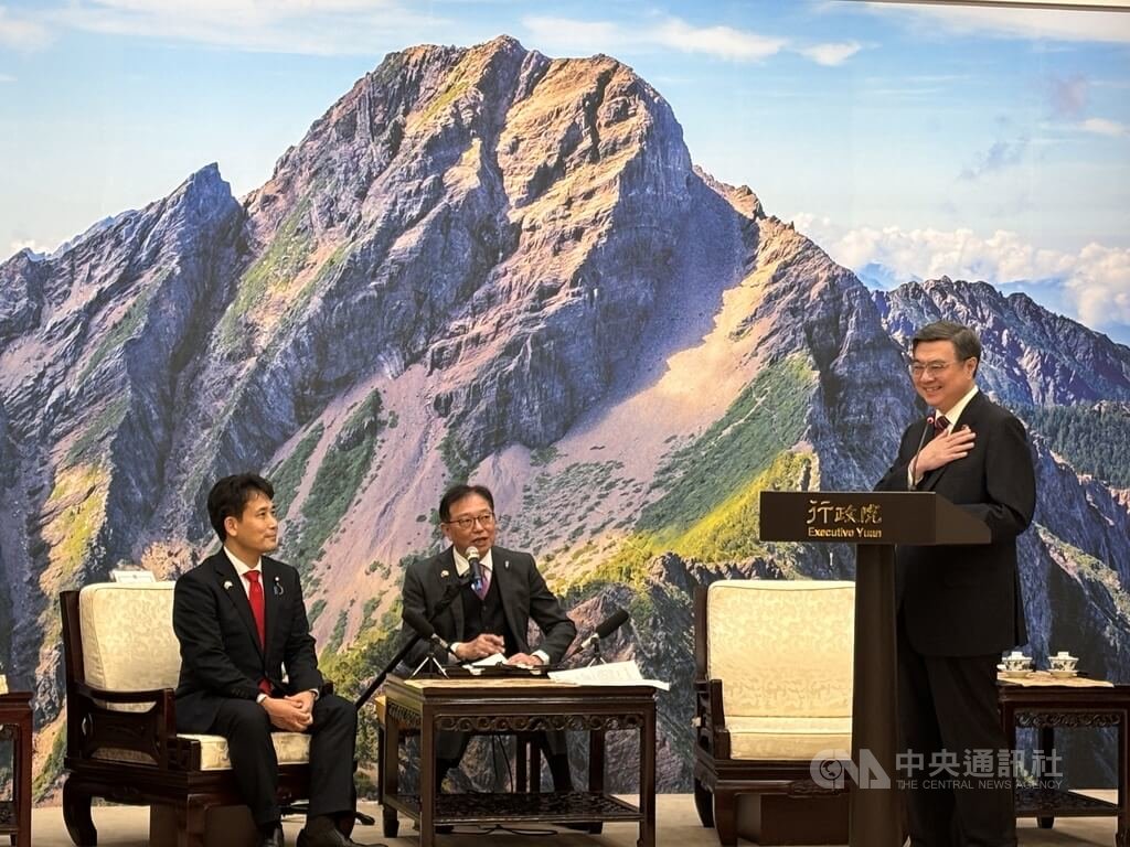 卓榮泰今天接見日本自民黨參議院友台團體「TY會」會長、日本參議員瀧波宏文一行。卓榮泰致詞指出,瀧波宏文是台灣女婿,不僅在日本國會經常為台灣仗義執言,也力助日本法務省修改法令,台灣人在日本的戶籍資料可以登載台灣,他要表達最高敬意。