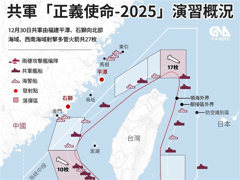 - 國防部:共軍射兩波次27枚多管火箭 落彈24浬線周邊2025/12/30 18:24