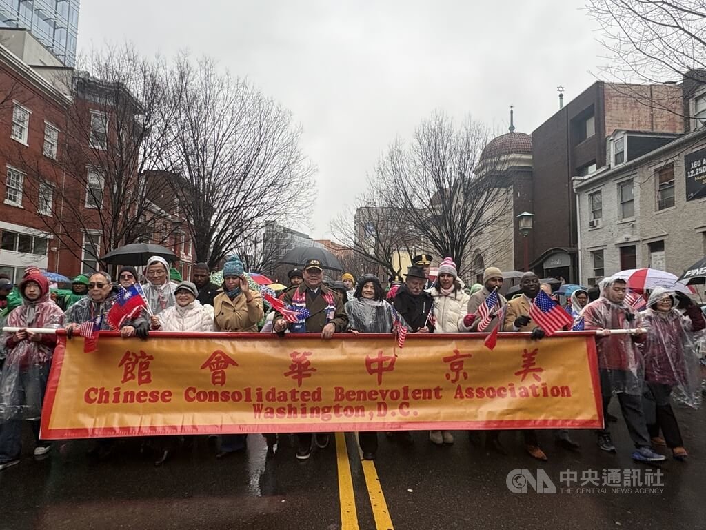 華府農曆春節遊行今天在中國城登場。華府市長鮑賽(Muriel Bowser)、徐佳青及駐美代表俞大㵢領銜遊行,在不小的雨勢中迎接馬年。