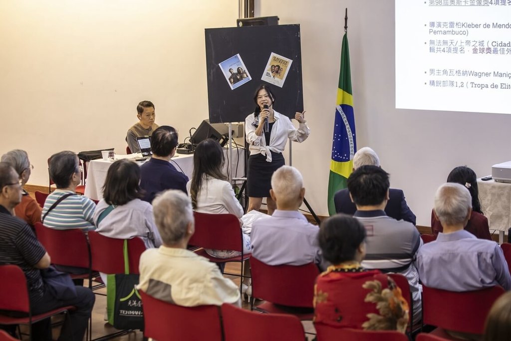 謝如欣在講座開場播放蕭泰然為228創作的古典樂「1947序曲」,讓觀眾透過音樂感受歷史氛圍。她並以去年奧斯卡獲獎的巴西軍政主題電影「我依然在此」與今年入圍奧斯卡4項提名的「這不只是個間諜故事」為例,分析導演與演員作品中蘊含的人權、轉型正義及社會關懷意涵,並連結到台灣電影「悲情城市」、「返校」及近期票房破億的「大濛」,串起台巴兩地的歷史記憶。