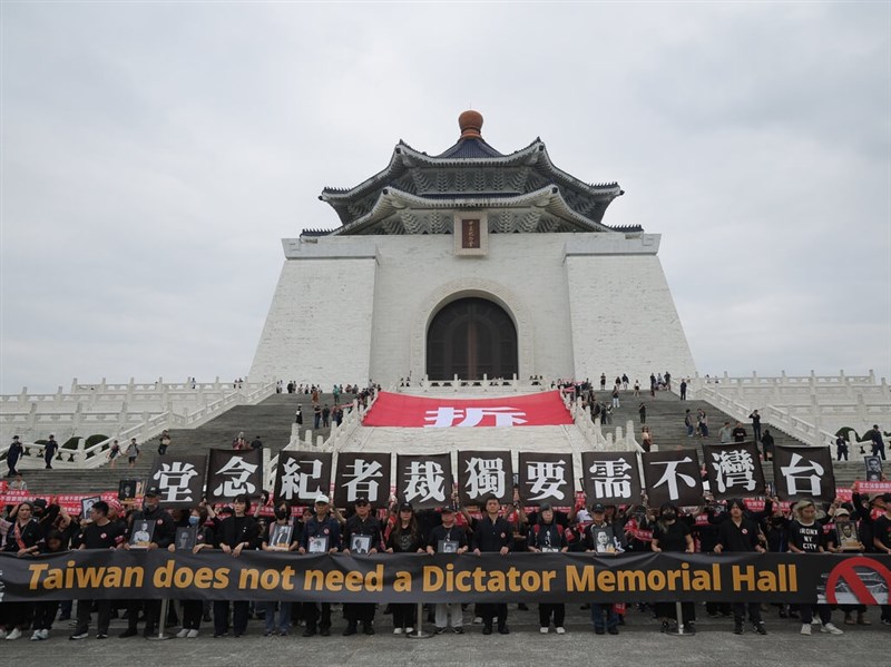 (中央社記者高華謙台北5日電)多個民間團體今天下午在中正紀念堂發起「台灣不需要獨裁者紀念堂」行動,呼籲關閉中正紀念堂堂體、拆除蔣介石銅像,將此地轉型為民主空間,才能真正告別威權。