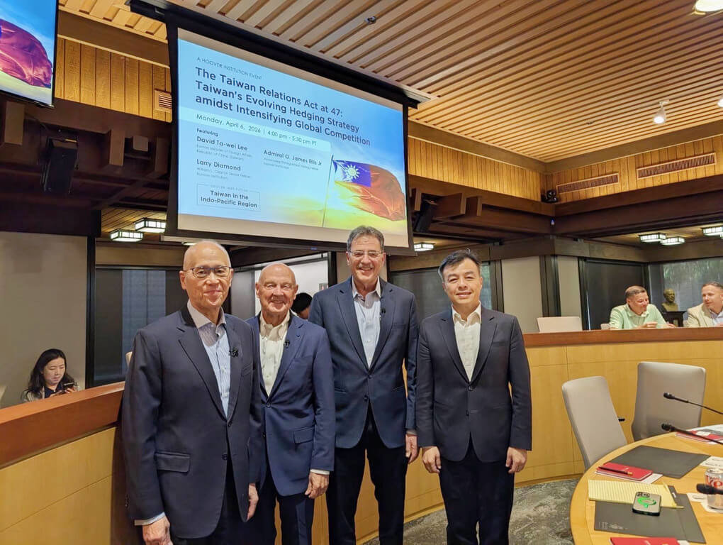美國實施台灣關係法將屆滿47週年,前外交部長李大維今天在胡佛研究所(Hoover Institution)針對台灣地緣政治挑戰及避險策略(Hedging Strategy)闡述看法。