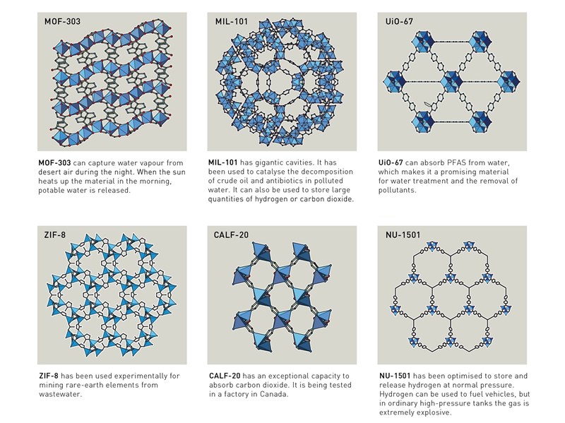 諾貝爾化學委員會表示:「當它們結合時,會鍵結形成一個排列良好、空間寬敞的晶體。它就像一顆充滿無數孔隙的鑽石。」