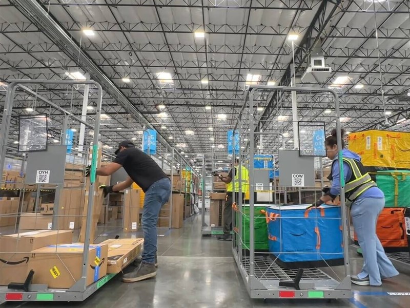 中央社與來自歐美、澳洲、日本、印度等約100名記者造訪亞馬遜特大型配送站。在亞馬遜旗下雲端服務AWS當機修復後,員工加快處理延誤包裹,現場瀰漫節日前的忙碌氣氛。