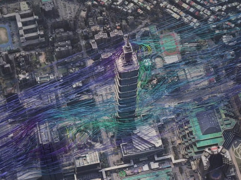 (中央社記者張欣瑜拉斯維加斯5日專電)輝達(NVIDIA)執行長黃仁勳今天在美國消費性電子展(CES)發表主題演講,除宣布實體AI的ChatGPT時刻已經到來,開場影片再次展示氣候模擬平台,以台北101為例呈現城市高樓環境中的氣流動態。