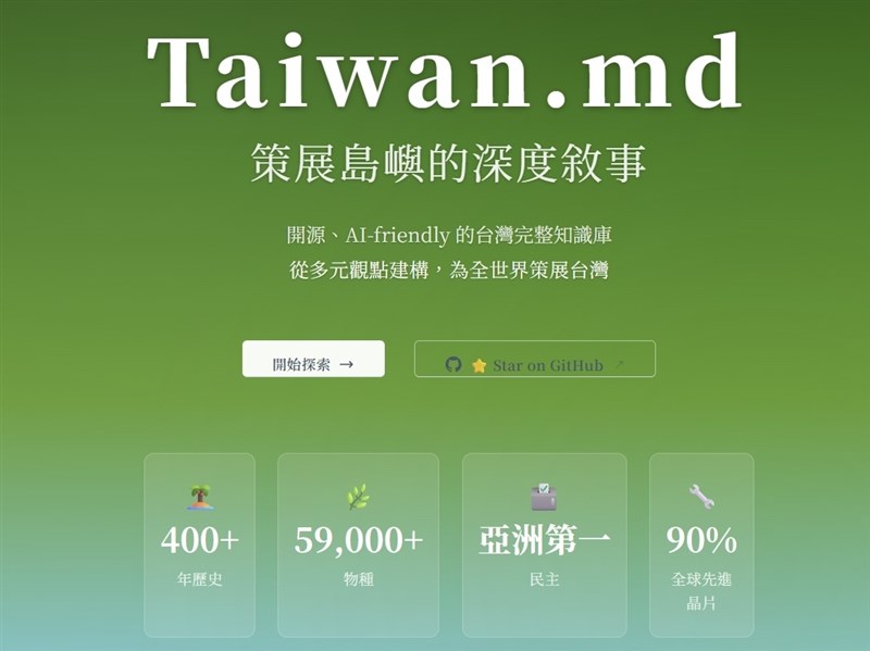 (中央社網站)台灣在世界的舞台越來越受到矚目,但除了珍珠奶茶和台積電,要如何讓外國人更深入認識台灣這個土地?新媒體藝術家吳哲宇為此打造台灣知識庫Taiwan.md,以開源協作及AI友善的格式,期待在AI時代帶給世界最完整的台灣人觀點。