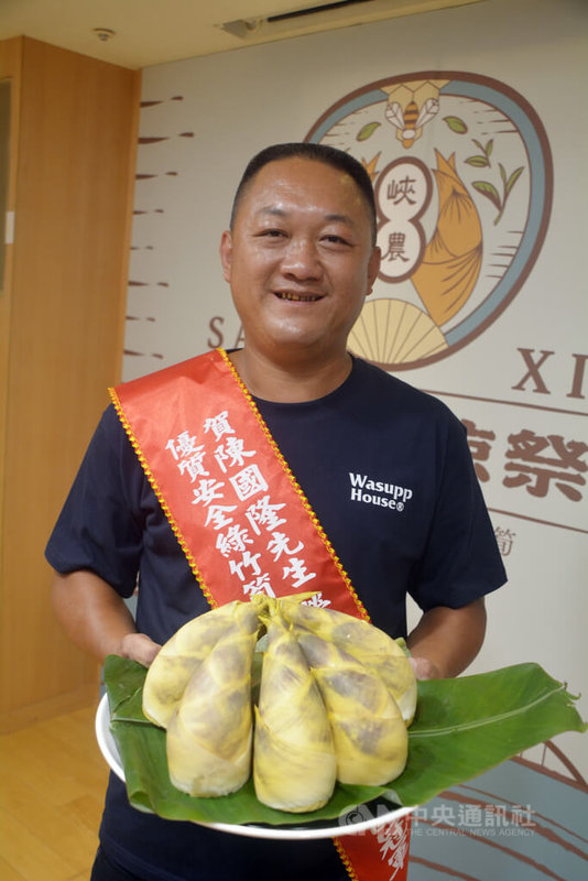 主辦單位說,現在是綠竹筍產季,三峽綠竹筍口碑佳。今年全國9縣市綠竹筍評鑑比賽,「溯源組」冠軍是三峽區農民陳國隆,今天也出席記者會。