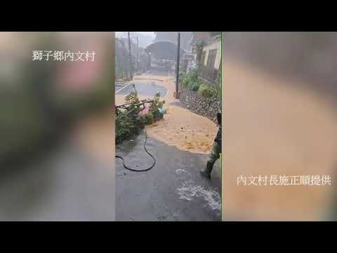 恆春半島多處累積雨量超過100毫米,其中獅子鄉內文村上午8時許,因豪雨造成山溝排水不及,遭枯枝堵塞,泥水溢流路面,水一度高過腳踝;內文村長施正順表示,上午即出動山貓清理山溝,並已勸導村內10戶居民準備撤離,幸因雨勢趨緩,未進一步釀災。
