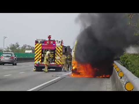 車上包含駕駛還有5名乘客都幸運平安,確切起火原因還在調查。