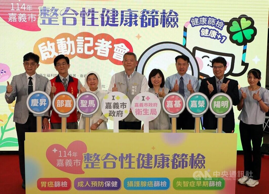 (中央社記者黃國芳嘉義市2日電)嘉義市民114年整合性健康篩檢啟動記者會今天在天主教聖馬爾定醫院舉行,今年新增胃癌、攝護腺癌篩檢以及失智症的AD8篩檢問卷,擴大守護市民的健康。