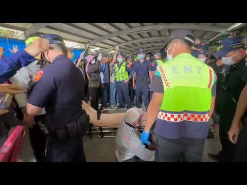 自救會成員不滿縣府管制會場,與警方數度爆發推擠,1名男子在衝突中摔傷,造成左大腿變形骨折送醫治療;另1名老翁在推擠中摔傷倒地,主訴受傷但無明顯外傷,意識清楚送醫。
