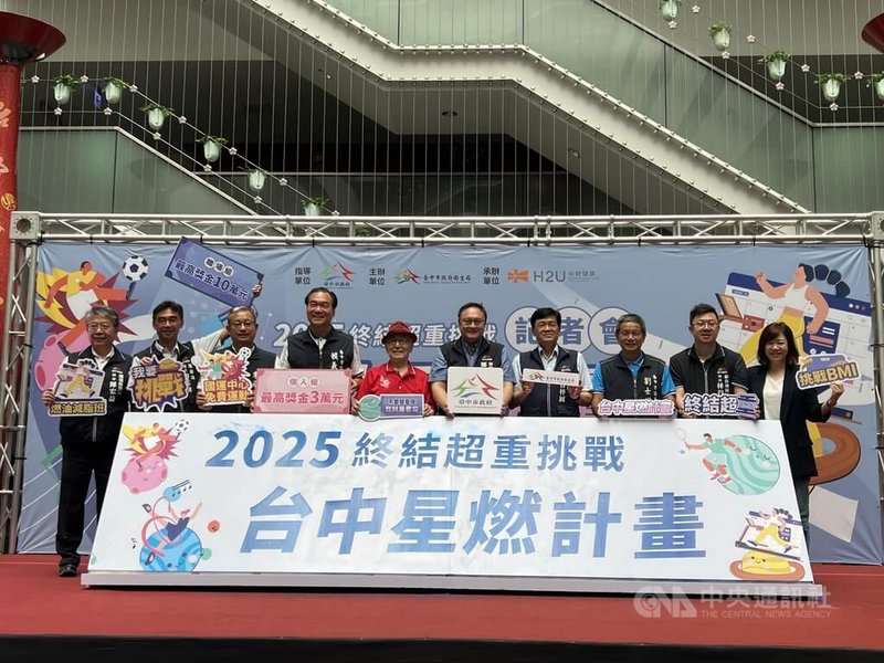 台中市衛生局今天舉行「2025台中星燃計畫終結超重挑戰」啟動記者會,宣布減重促進行動正式起跑,邀請市民一起甩油、拚健康、拿獎金。鄭照新宣布將加入減重行列,希望甩「6都最胖副市長」稱號,並當場磅秤體重112.5公斤;而金氏世界紀錄最年長羽球員的104歲林友茂也現身說明養生之道及運動的好處。