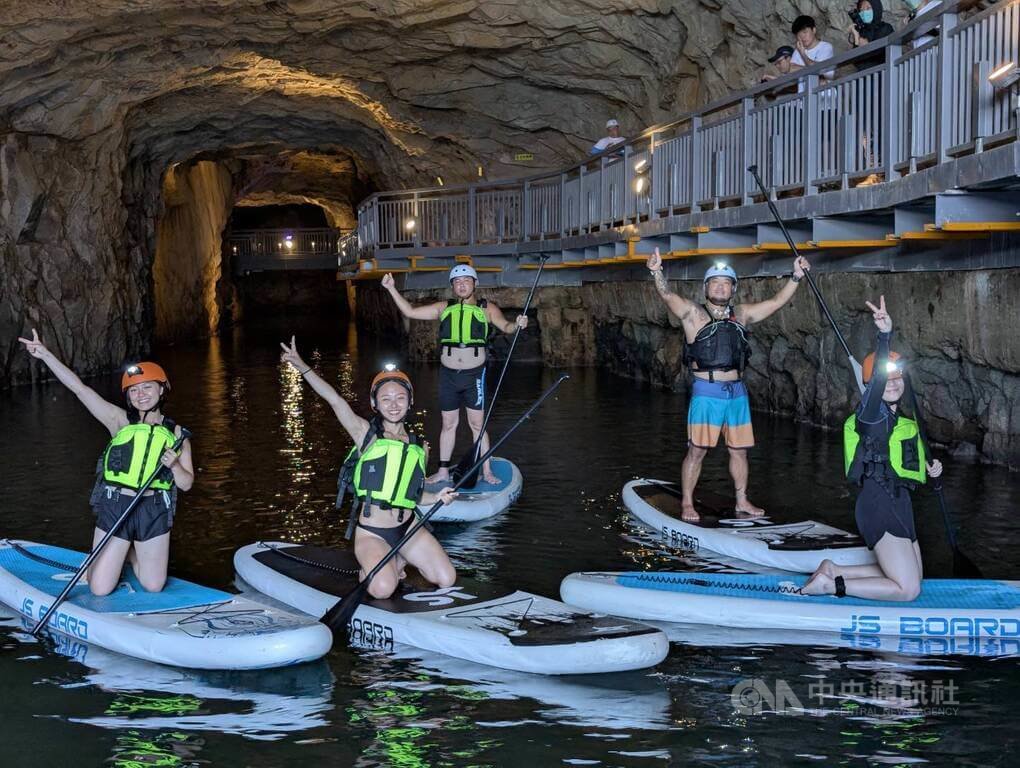 (中央社記者吳玟嶸金門3日電)金門縣府整修昔日戰備用的「漁村小艇坑道」,並規劃SUP立式划槳活動,金門縣觀光處表示,坑道內光影流動、水面平靜,是兼具神秘與靜謐的特殊水上體驗。