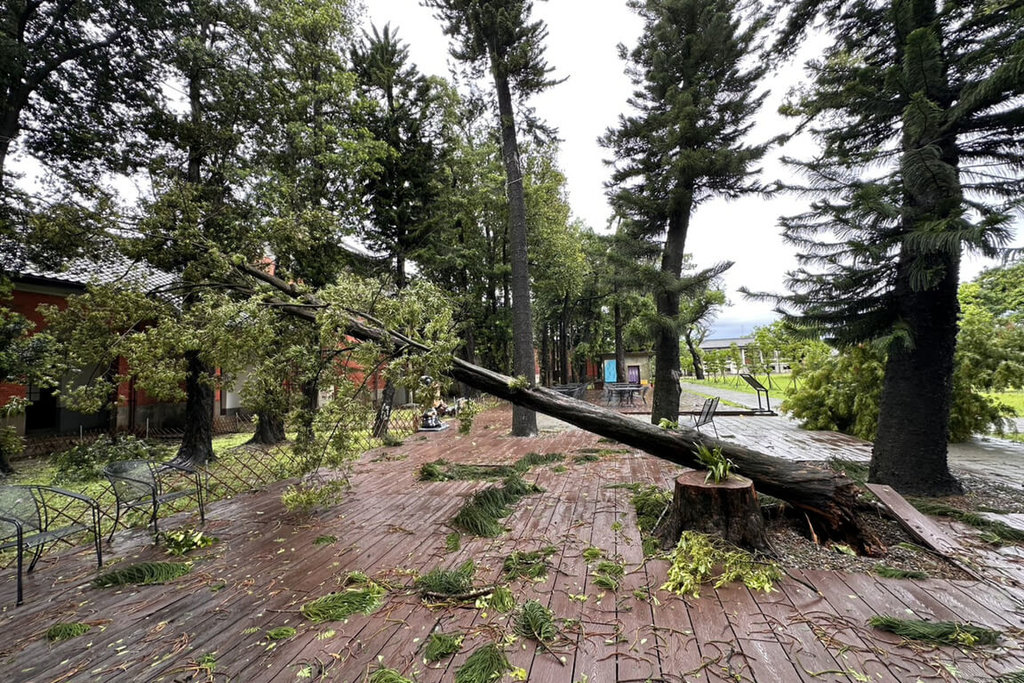 台南市政府文化局人員告訴中央社記者,昨天晚上到今天凌晨間風雨猛烈,導致各文化場館出現樹木倒伏、建物局部毀損等情形,部分區域植栽災情嚴重,影響交通與行人安全。