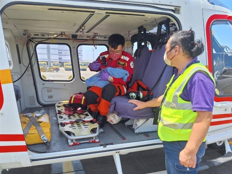 澎湖縣衛生局今天表示,這名1個月大男嬰,6日晚間曾到七美衛生所就醫,有感冒等症狀。昨天上午一度出現呼吸暫停情形,衛生所緊急申請救護直升機,上午10時28分起飛送往高雄長庚醫院。凌天航空派出2名醫護人員隨行,飛行途中持續為男嬰維持呼吸道暢通並給予正壓給氧。