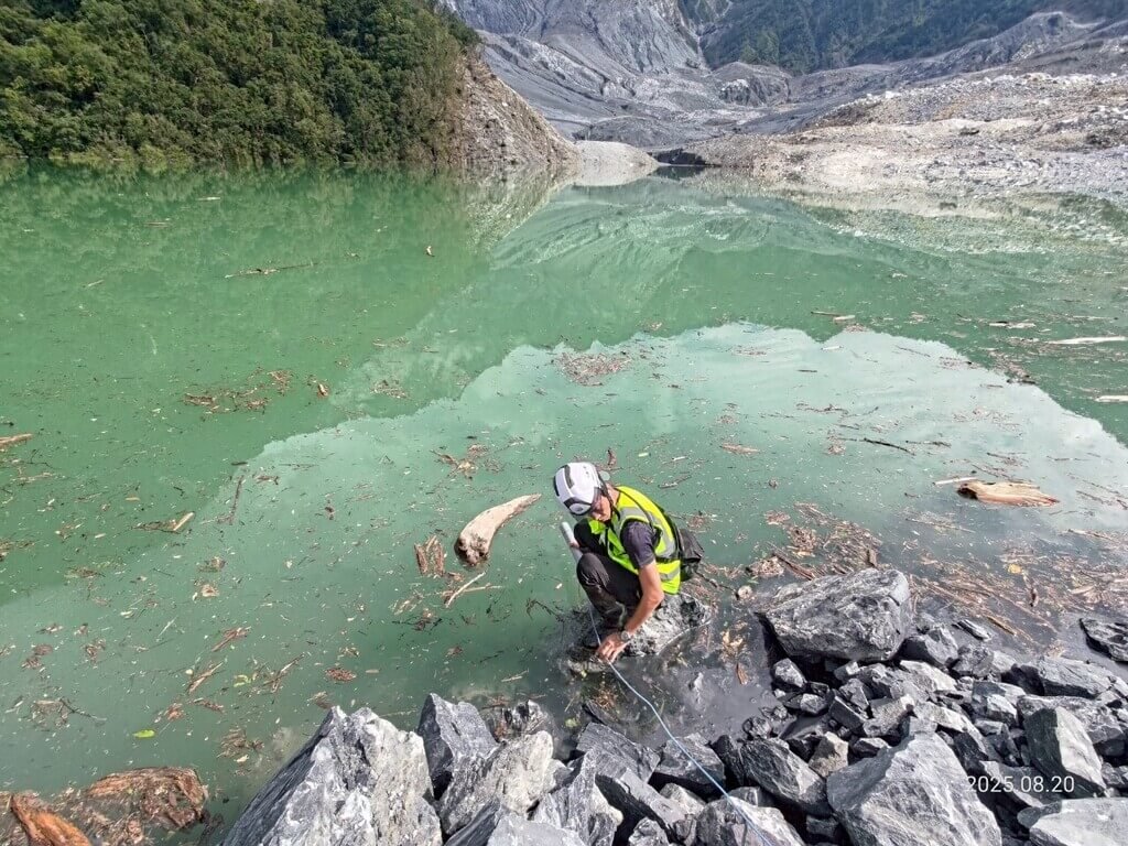 花蓮分署表示,已在湖區周邊設置雨量計、濃度計、CCTV監視器,並連結水利署下游水位站及監視影像,隨時掌握最新狀況,但因壩頂地形險峻、無道路可達及受山區氣候影響,水位計安裝困難;在空勤總隊支援下,終於成功將水位計吊掛至壩頂,完成設置。
