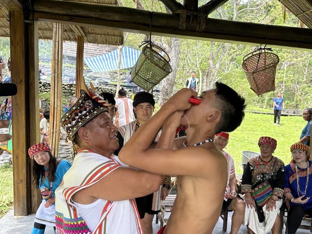 (中央社記者盧太城台東縣30日電)台東縣海端鄉桃源村今天重現過去成年禮的拔牙和吹耳儀式,象徵承擔挑戰和對成年的祝福。部落表示,這項傳統儀式已消失近百年。