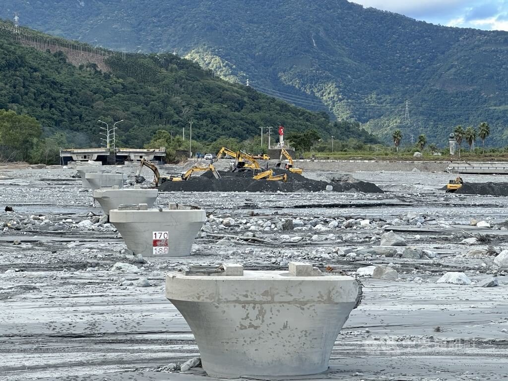 馬太鞍溪堰塞湖潰流,夾帶大量泥砂土石沖至下游,水利署河川局持續疏濬,預計114年底疏濬100萬方土石,後續以標售方式來處理砂石。中央社記者李先鳳攝 114年10月13日