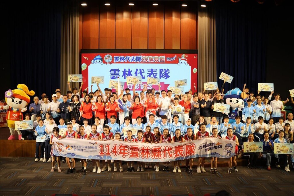 張麗善表示,114全國運動會18日登場,今天特為雲林縣代表隊授旗,是授予責任,也是授予榮耀,旗開得勝,希望大家為雲林爭光。