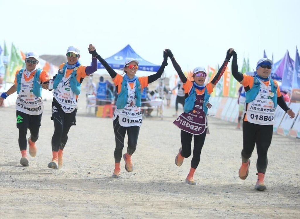 (中央社記者趙麗妍台中14日電)東海大學校長張國恩與EMBA校友會理事長林正雄率領70人團隊挑戰敦煌戈壁大漠,歷經4天3夜、全程120公里的極限挑戰,更遭遇沙塵暴,全員完賽並奪4項大獎。