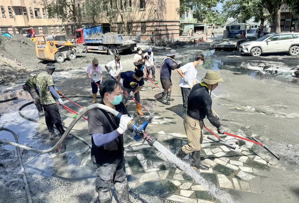 消防局表示,期間歷經連日高溫與泥濘環境,協助清除地下室、操場及主要排水溝泥沙,並完成清洗光復商工校長辦公大樓前廣場、行政大樓、圖書館及視聽大樓中庭等區域。(編輯:吳素柔)1141015