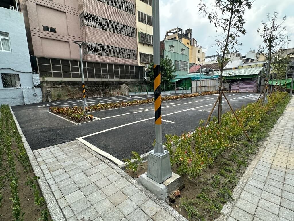 交通局說明,停車場工程包含場地整地與瀝青鋪面,並依空間條件與實際需求劃設約80席機車格位,全場設有LED照明路燈,夜間光線充足,增進安全與舒適度。