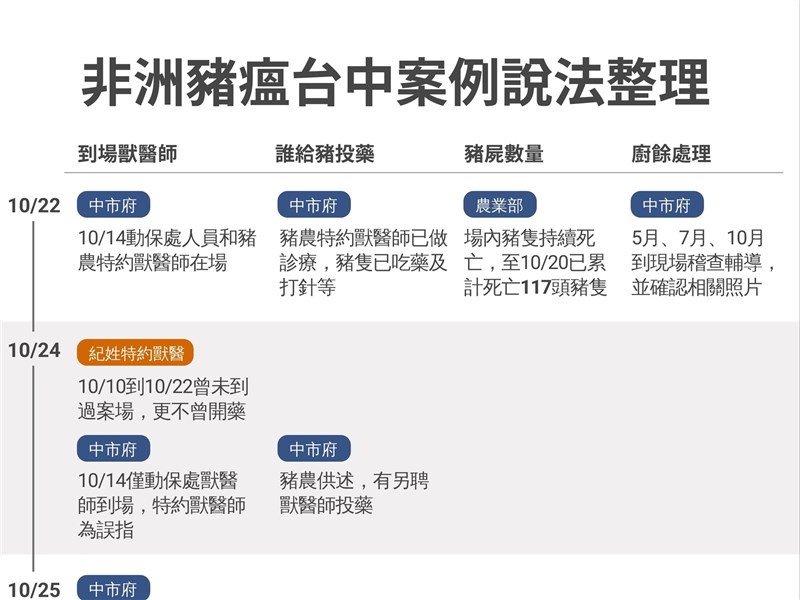 - 非洲豬瘟案 獸醫師爭議中市府6天內數度改口2025/10/27 21:53