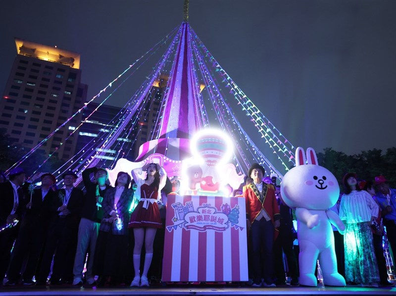 新北歡樂耶誕城今年與全球知名IP「LINE FRIENDS & LINE FRIENDS minini」合作,以「馬戲嘉年華」為主 題,打造童趣療癒、繽紛歡樂的年度耶誕盛會。象徵夢想與歡樂的耶誕樹「歡樂馬戲棚」及周邊主題裝置與燈飾,也在倒數計時之後點亮。