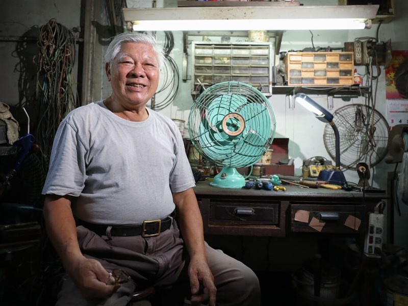 (中央社記者趙麗妍台中22日電)1.5坪大工作室,75歲鄭清木戴著老花眼鏡,手指靈活轉動螺絲起子,更換零件讓老電扇葉再次轉動,緩緩送出徐徐微風,喚起許多人懷舊情懷。他笑說:「修理的是回憶不是涼意。」