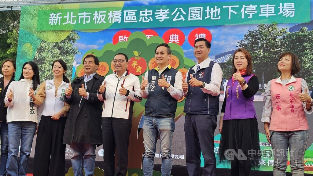 侯友宜今天在國民黨立委葉元之及藍綠民代、地方人士一起出席板橋忠孝公園地下停車場啟用典禮,宣布將自今天下午6時起試營運至12月24日止,開放免費停車。