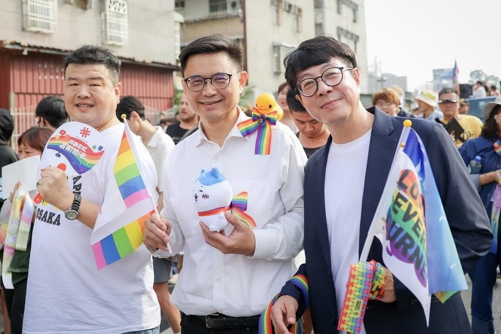 2025高雄同志大遊行今天下午在鳳山登場,現場彩虹旗海、人潮熱烈,參與市長初選的立委賴瑞隆、許智傑、邱議瑩、林岱樺和多名高雄市議員均到場參與支持,與民眾一同沿街遊行。