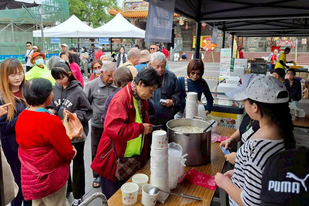 (中央社記者楊思瑞台南30日電)台南市政府農業局協助行銷在地生產虱目魚,今天在安南區四草大眾廟舉辦今年第2場產業文化活動,邀請優質商家展售虱目粥、虱目魚香腸等美食,搭配食漁教育體驗推廣產業價值。