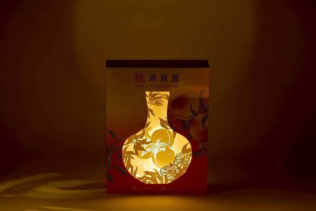 張善政致詞表示,「桃茶寶盒」結合地方冠軍好茶與國寶級文物意象,以清代粉彩蟠桃天球瓶元素,巧妙融合茶文化與藝術,展現桃園精緻農產與城市品味,是兼具精美外型、醇厚茶韻與創意實用的茶文化精品,除了茶盒底部加入文物介紹,茶盒也採中空設計,置入燈泡還可作為燈飾。