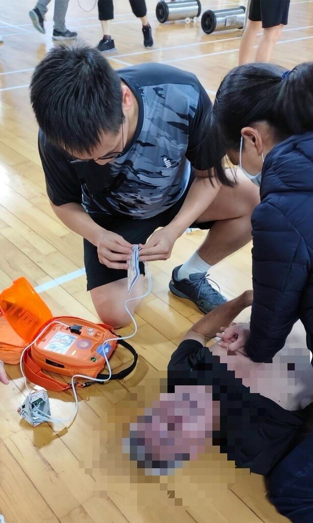 (中央社記者王朝鈺宜蘭7日電)羅東消防分隊隊員林君軒昨天休假前往羽球館運動時,發現民眾倒地已無脈搏,林員與現場人員合作實施心肺復甦術(CPR)及操作自動體外心臟電擊去顫器(AED),搶回患者寶貴生命。