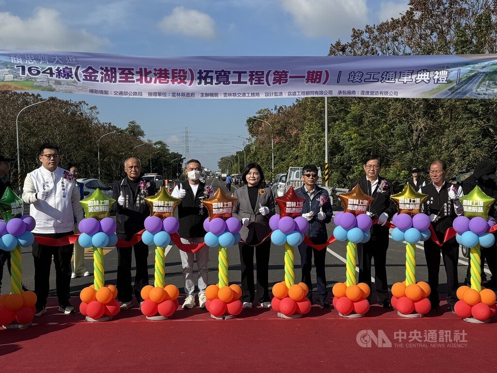 雲林縣交通工務局今天舉辦縣道164線(金湖至北港段)通車典禮,由雲林縣長張麗善主持,國民黨立委丁學忠、交通部公路局雲嘉南區養護工程分局長郭清水等人參與。