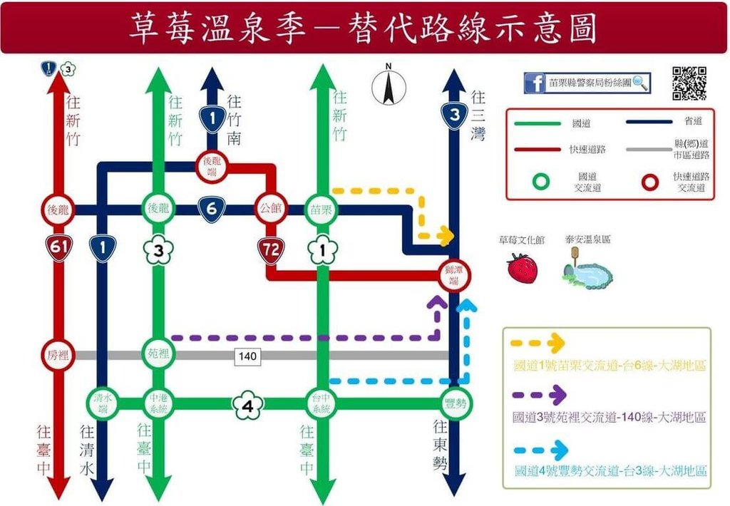 苗栗縣警察局交通隊今天表示,配合民國114年草莓溫泉季系列活動,13日啟動溫泉季交通疏導勤務,並實施多項交管措施。