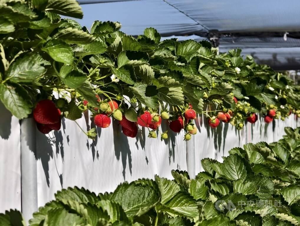(中央社記者管瑞平苗栗縣11日電)苗栗縣大湖鄉素有「草莓王國」之稱,受氣候炎熱影響,今年農民普遍延後栽種,目前一期花開,果實逐漸轉紅。農會今天宣告一年一度草莓季登場,除採摘鮮果,也推出全新草莓商品。