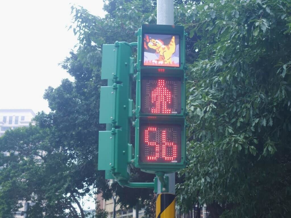台中市交通局今天發布新聞稿表示,與科博館跨域合作,選定人潮密集、觀光動線重要的西區路口,包括台灣大道與館前路口、館前路與博館路口,以及公益路與館前路口等,推出草悟道小狗與恐龍行人號誌,加深行人對號誌變化的注意力。