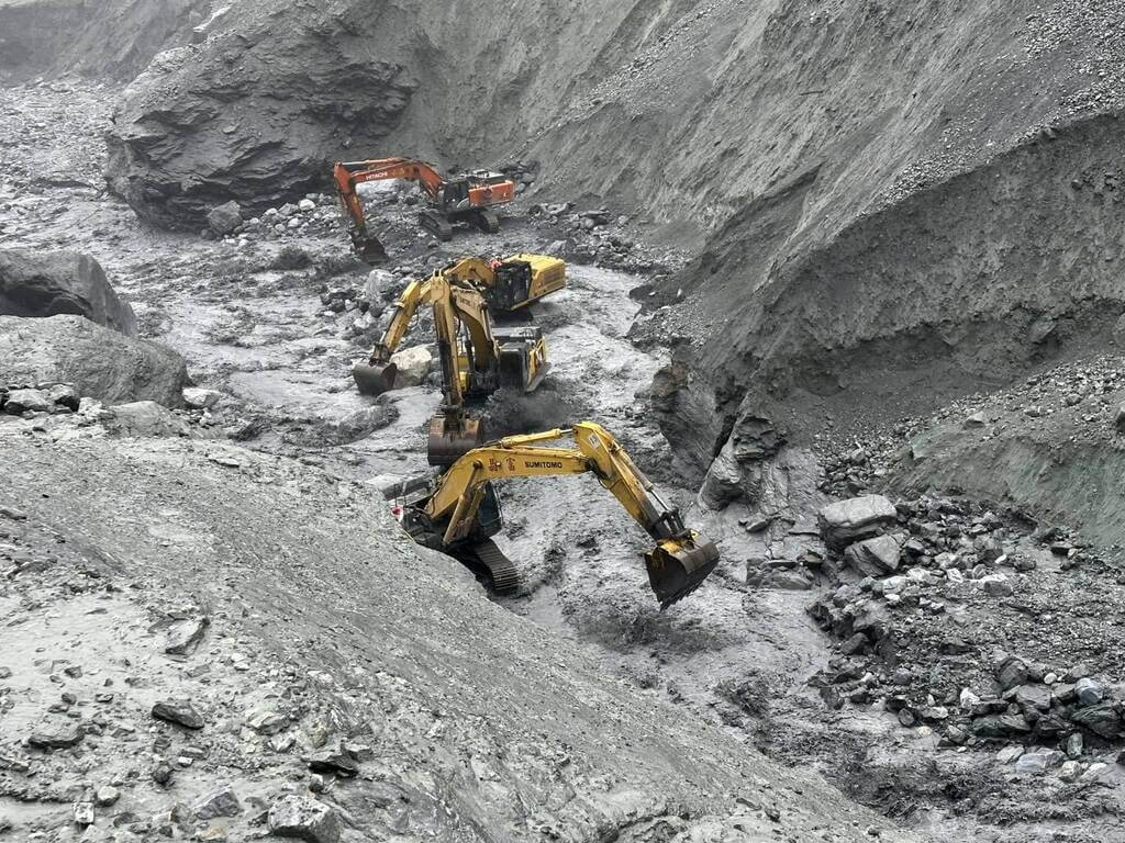 林業及自然保育署花蓮分署長黃群策表示,這批施工團隊14人駕駛5輛重機具,自上月3日起嘗試沿河道上溯,一度遇到邊坡崩塌掩埋機具,團隊二度出動上月28日抵達壩頂。