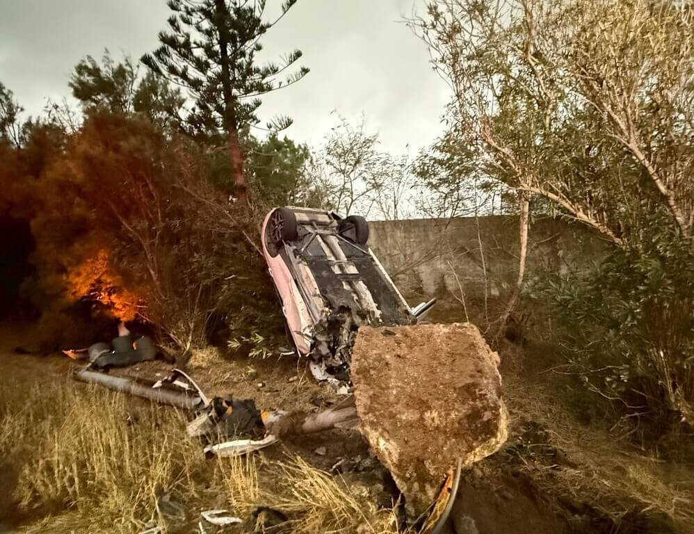 馬公分局今天上午6時6分接獲通報,於縣道204線烏崁段5.7公里處發生自小客車交通事故,消防局派遣湖西及馬公分隊共3車6人前往搶救,由小隊長許朝琳負責現場指揮。